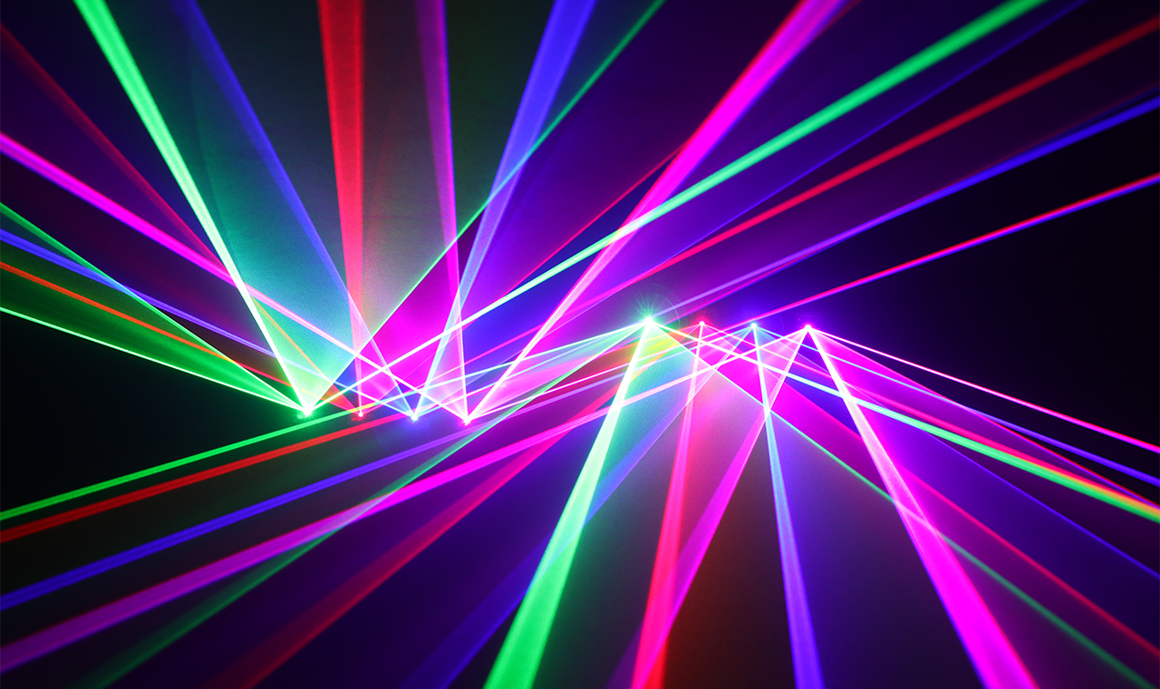 TTL stands for “Transistor-Transistor Logic,” and is another way to say that the laser diode modulates digitally, and it’s always either 100% on or 100% off, never anywhere in the middle. TTL laser diodes are generally cheaper, and in some situations can appear brighter than a system of analog-modulated laser diodes with the same peak power level. TTL laser diodes are usually used in lower-cost, entry-level systems where maximum brightness is required at all times and you don’t need a wide color palette. An RGB laser projector system with TTL modulation can only make 7 color combinations; red, green, blue, yellow, cyan, magenta and white.