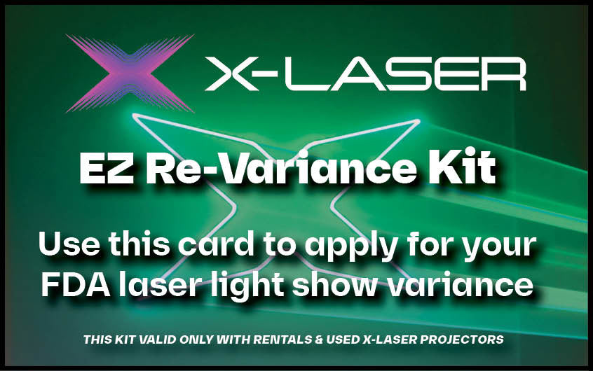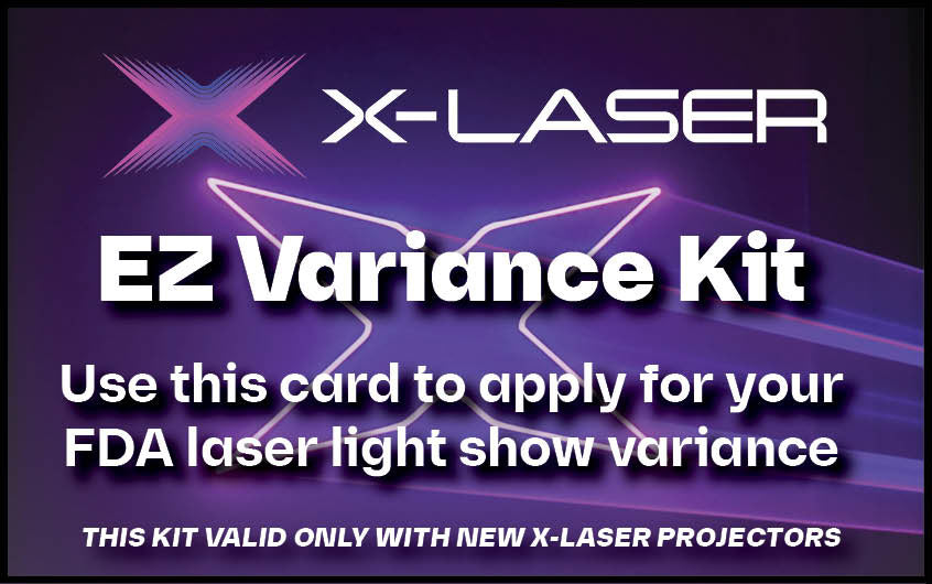 Approved variances are required under US law for any person, company or group, purchasing or renting high powered lasers to be used in laser shows within the United States. Only one kit is required per purchaser no matter how many FDA-varianced lasers (such as X-Laser) they wish to purchase.
